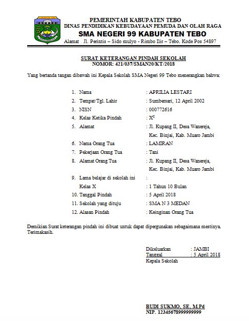Surat Contoh Surat Permohonan Pindah Sekolah