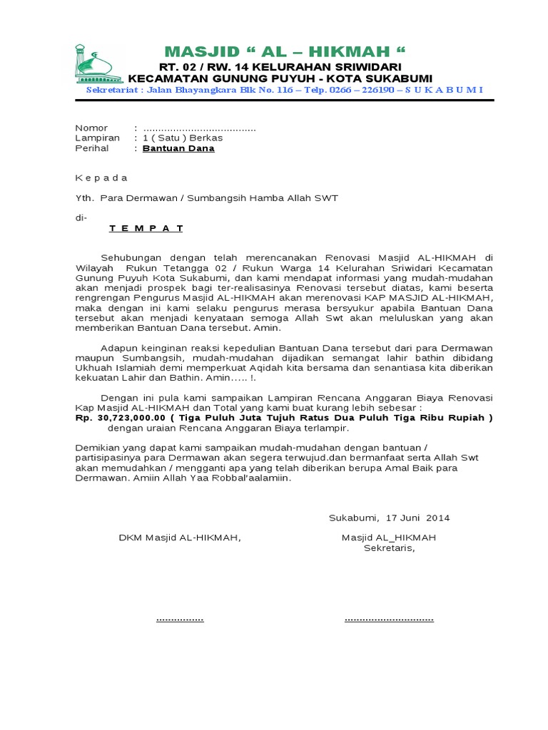Contoh kop surat masjid. Contoh surat permohonan bantuan dana pembangunan masjid. Disini akan saya share contoh undangan pengajian peresmian masjid selesainya pembangunan masjid. Anda dapat melihat dengan jelas contoh kop surat dkm menggunakan desktop anda tablet android atau iphone dan perangkat smartphone lainnya secara gratis. Pada artikel ini admin masih membahas contoh contoh surat. Hai sobat belajar office. Contoh surat undangan remas remaja masjid 2019 contoh surat undangan rapat pengurus masjid contoh surat undangan remas remaja masjid ini adalah format surat udangan untuk remaja masjid untuk bisa menghadiri forum atau silaturahmi remaja masjid di tempat anda sehingga bisa membahas tentang kemajuan untuk bisa menjadi remaja yang beragu didalam agam islam dan memberikan banyak sekali kemajuan.