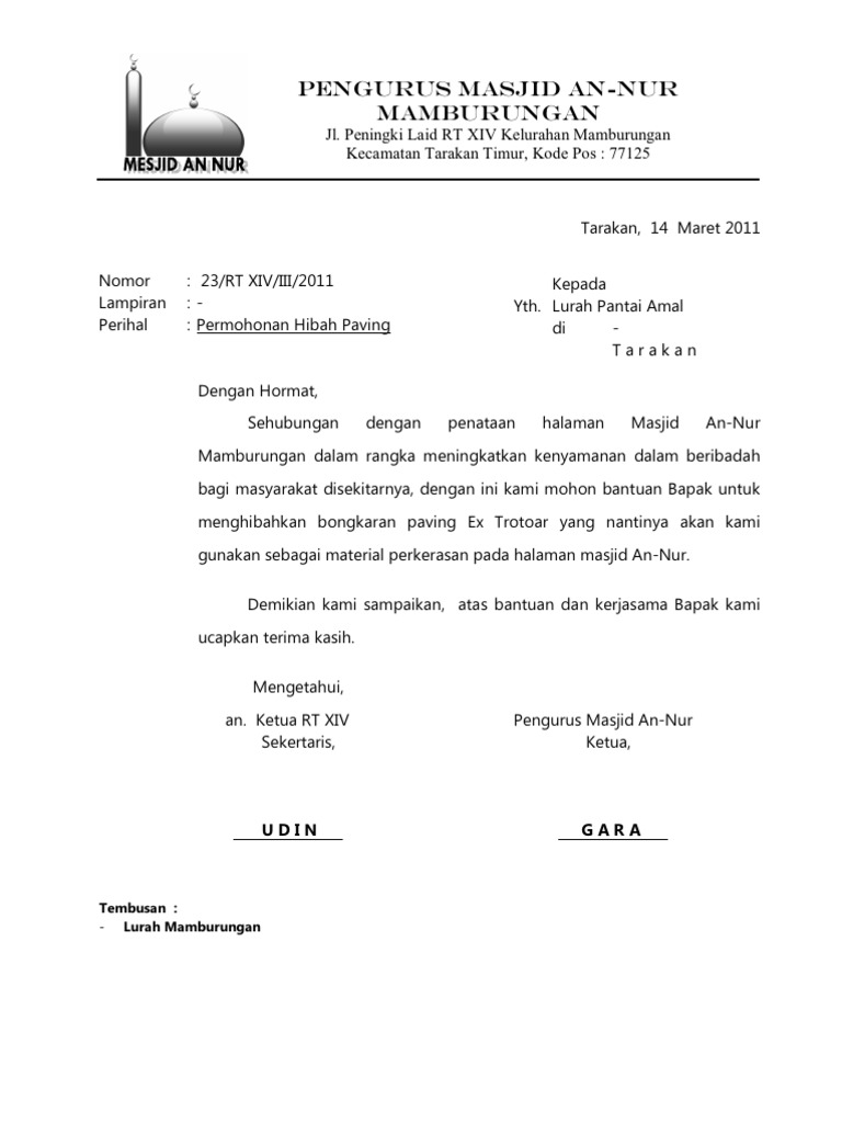 Contoh kop surat takmir masjid. Kop mesjid an nur mamburungan. Surat tugas pengumpulan dana masjid. Komponennya masih sama yakni logo dan identitas pembuat kop surat. Karusel sebelumnya karusel berikutnya. Anda dapat melihat dengan jelas contoh kop surat takmir masjid menggunakan desktop anda tablet android atau iphone dan perangkat smartphone lainnya secara gratis.