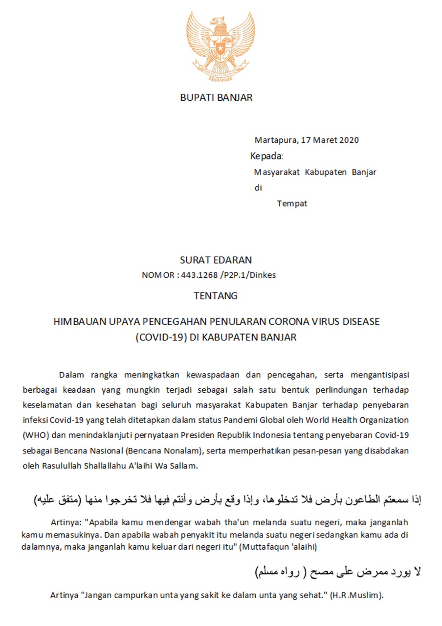 Surat Edaran 4 Terkait Penyebaran Virus Corona Covid 19