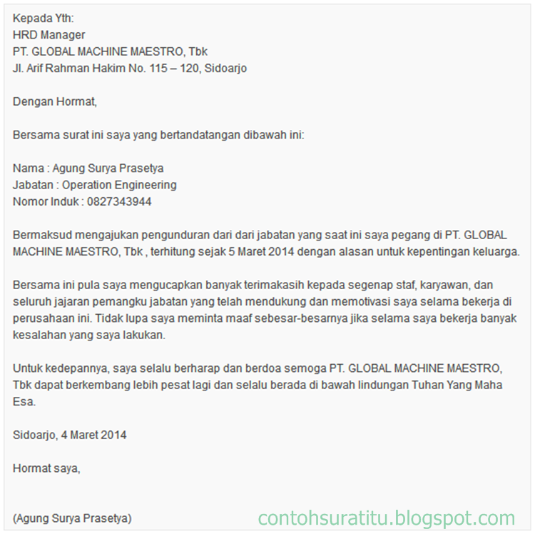 16 Contoh Surat Pengunduran Diri Dari Jabatan Lengkap