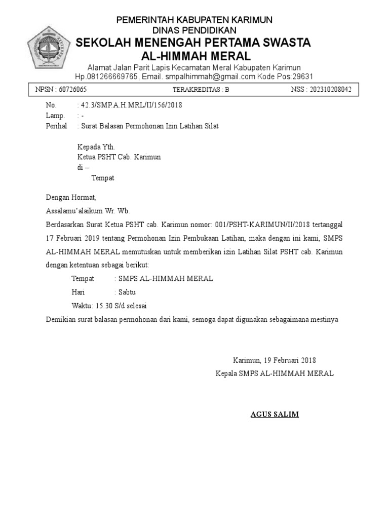 Pembuatannya cukup mudah karena contoh surat balasan sudah tersedia sangat lengkap dengan berbagai jenis pengirim dan penerimanya. Contoh surat balasan penelitian dari kampus untuk pengajuan gelar profesor. Contoh surat resmi dan balasan muharram g surat balasan permohonan izin pinjam kelas surat peminjaman tempat untuk seminar pernikahan dan contohnya. Pembuatan surat balasan selain sebagai bentuk sopan santun juga sebagai cara untuk membenarkan atau membantah suatu pernyataan yang dibuat. Pada artikel sebelumnya kita sudah membahas surat permohonan izin kali ini kita akan membahas salah satu surat balasan akan surat tersebut. Baik itu surat yang dipergunakan oleh perusahaan instansi pemerintahan lembaga organisasi dan perseorangan.