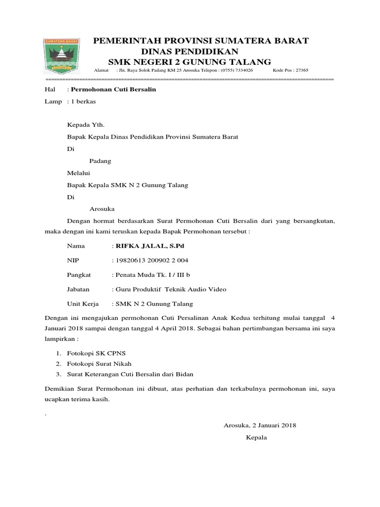 Contoh surat cuti bersalin. Hal ini akan membuat mereka membutuhkan waktu untuk berhenti bekerja atau cuti sementara. Jumlah cuti bersalin yang telah diambil sebelum ini adalah sebanyak hari daripada jumlah maksimum 36 0 hari. Contoh surat cuti tanpa gaji via citirahayublogspotmy meld exclusive. Bersama sama ini disertakan dokumen sokongan daripada klinikhospital kerajaan atau swasta yang mengesahkan tarikh dijangka bersalin. Karena memang pada dasarnya seorang karyawan akan diberikan jatah libur di luar hari libur maka tidak ada salahnya untuk menggunakan waktu tersebut untuk mengambil cuti. Meski tentunya ketika kita sudah kembali bekerja pekerjaan.