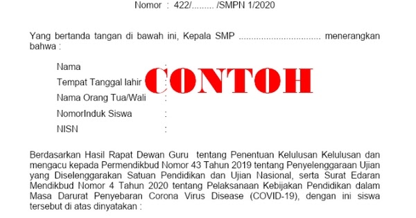 Kelulusan smp smplb program paket b atau sederajat ditetapkan tanggal 5 juni 2020. Contoh surat keterangan lulus sekolah smp.