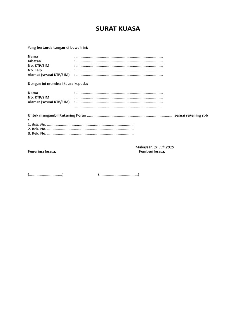 Sulamun tempattanggal lahir. Contoh surat kuasa perwakilan.