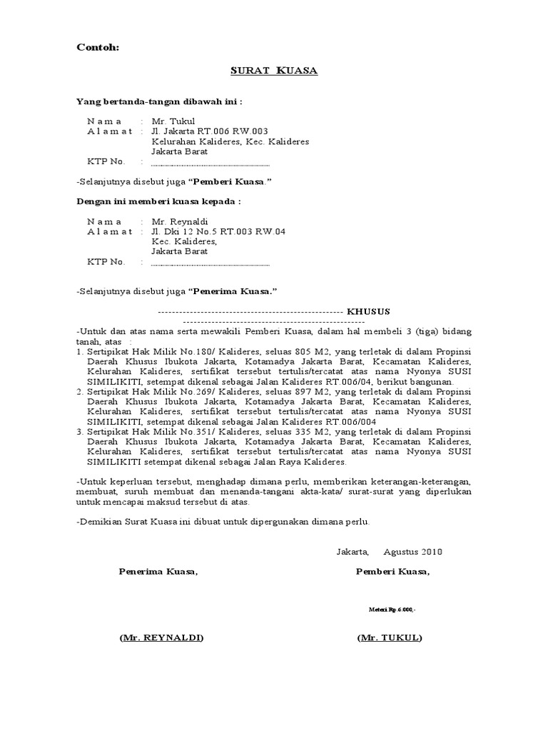 Contoh surat kuasa no. Tentukan bahwa pada pemenuhan letter of intent baik pembeli atau penjual harus membuat perjanjian pembelian yang memperluas ketentuan dari pihak pembeli. Beberapa hal penting yang tertera di surat perjanjian jual beli tanah mungkin akan terdengar awam dan sulit di mengerti. Kebutuhan masyarakat akan kepemilikan aset khususnya dibidang properti kini makin meningkat dari waktu ke waktu. Surat kuasa penjualan tanah tanah merupakan kekayaan yang memiliki kecenderungan naik harganyabelum ada sejarahnya harga tanah turun. Ini tentu dikarenakan oleh sebab tanah merupakan kekayaan yang tidak dapat dibuat sehingga jumlahnya akan semakin menurun seiring dengan bertambahnya penduduk.