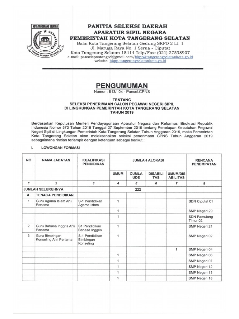 Surat pengadaan asn tahun 2019. Contoh surat lamaran cpns kota tangerang selatan 2018 sumber gambar. Dengan ini mengajukan permohonan untuk menjadi peserta seleksi calon pegawai negeri sipil di lingkungan pemerintah kota tangerang formasi tahun 2019 pada jabatan. Addendum pengumuman penerimaan cpns kota tangerang 2019 berdasarkan keputusan menteri pendayagunaan aparatur negara dan reformasi birokrasi republik indonesia nomor 565 tahun 2019 tanggal 27 september 2019 tentang penetapan kebutuhan pegawai negeri sipil di lingkungan pemerintah kota tangerang tahun anggaran 2019 maka pemerintah kota tangerang akan melaksanakan seleksi penerimaan cpns formasi. Nah jika anda saat ini sedang mencari format surat lamaran cpns kabupaten tangerang tahun 2019 silahkah simak terus halaman ini sampai selesai. Lowongan cpns kota tangerang membuka lowongan cpns hingga ratusan pertahunya dan kini sudah di buka kembali untuk para peserta ini menjadi calon pegawai negeri sipil yang mana banyak menjadi incaran banyak orang karena menjadi pns memang enak kita sudah mengikuti umr di kota tangerang dan juga ada gaji tunjangan.