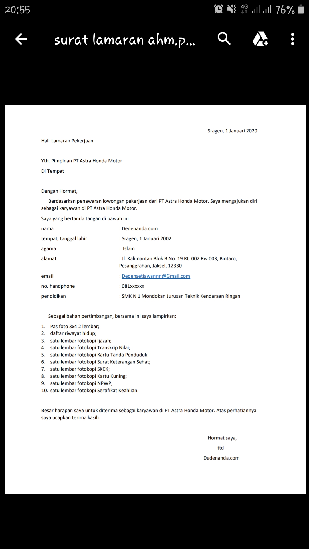 Contoh surat contoh surat lamaran yang baik 2016. Contoh surat lamaran kerja pt ahm di contoh surat lamaran kerja pt ahm karawang contoh surat lamaran kerja pt ahm cibitung contoh surat l.