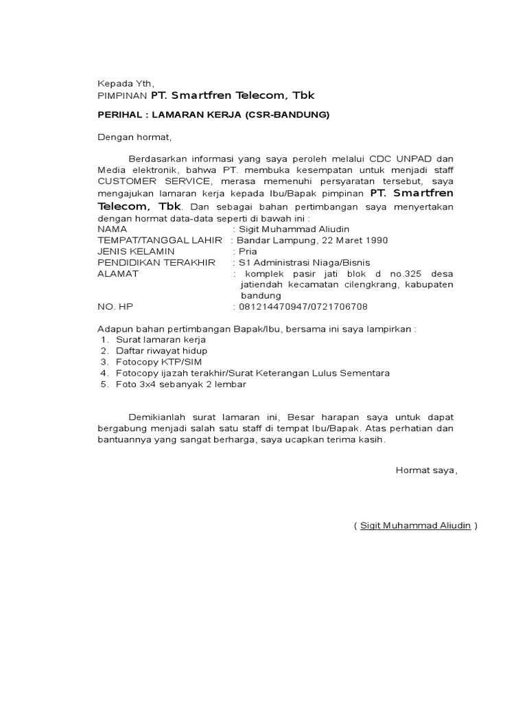 Contoh surat lamaran kerja vivo 15 contoh surat lamaran kerja di pt yang baik dan benar memiliki pekerjaan tetap. Tetapi yang penting adalah kita mempunyai semangat kerja yang tanggu untuk bisa bekerja di tempat kerja anda yang inginkan. Contoh surat lamaran kerja berdasaran iklan pertama adalah wajib menuliskan sumber informasi lowongan yang didapatkarena dengan begitu perusahaan telah dianggap sungguh sungguh dalam melamar pekerjaan. Contoh surat lamaran kerja di perusahaan seringkali dicari oleh para pencari kerja yang ingin mengajukan lamaran pekerjaan di perusahaan perusahaan yang ada di indonesia. 15 contoh surat lamaran kerja berdasarkan iklan paling lengkap salah satu sumber informasi tentang lowongan pekerjaan adalah melalui iklan. Jika anda ingin mengisi posisi sebagai spgspb di sebuah perusahaan maupun di event tertentu anda harus mengirimkan surat lamaran kerja.