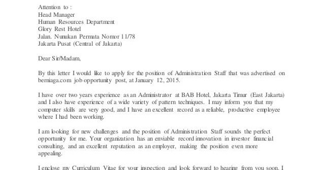 Bedanya kali ini lamaran pekerjaan tersebut akan ditujukan kepada sebuah hotel. Jakarta february 17th 2019. 15 contoh surat lamaran kerja dalam bahasa inggris yang baik setiap orang tentu memiliki pengeluaran yang harus dipenuhi setiap harinya. Contoh membuat surat lamaran hotel apalagi di sebuah daerah ataupun tempat terdapat tempat wisata seperti bali yang memang terkenal dengan wisata alamnya. Tentunya anda memiliki banyak peluang untuk mendapatkan posisi yang dibutuhkan. Contoh surat lamaran kerja housekeeping february 2 2013 mr.