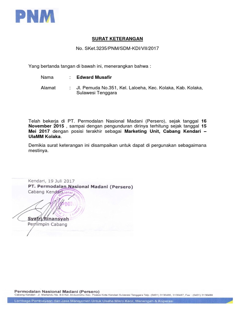 Contoh surat lamaran pt permodalan nasional madani. Informasi yang anda cari adalah contoh surat lamaran pt permodalan nasional madanidibawah ini telah kami sajikan informasi lowongan kerja lulusan sma smk d3 s1 s2 semua jurusan lowongan bank bumn cpns dan swasta lainnya berdasarkan keterkaitan artikel ataupun keterkaitan iklan yang benar benar sesuai dengan kata kunci. Permodalan nasional madani persero salah satu badan usaha milik negara yang didirikan sebagai bagian dari solusi strategis pemerintah untuk meningkatkan kesejahteraan dan pemerataan ekonomi masyarakat melalui pengembangan akses permodalan dan program peningkatan kapasitas usaha bagi para pelaku usaha mikro kecil menengah. Pt permodalan nasional madani persero atau pnm hadir sebagai solusi peningkatan kesejahteraan melalui akses permodalan pendampingan dan program peningkatan kapasitas para pelaku usaha. Bagi yang berminat dengan lowongan kerja pt. Bogor 23 pebruari 2017 kepada yth. Permodalan nasional madani persero padang tersebut segera daftarkan diri anda secara online langsung klik pada link daftar online di bawah ini.