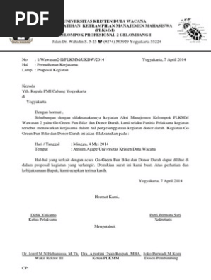 Puskesmas keliling desa manunggal kidul jl. Demikian hanya sekedar contoh tambahan dari admin menurut saya cara mengungkapkan sesuatu tiap orang ada seninya sendiri berbeda beda dalam menyampaikan begitu pula untuk surat permohonan donor darah kepada pmi bisa dikembangkan lagi secara formal ataupun kehalusan dalam membuat kalimat yang terpenting pada prinsipnya surat tersebut mudah dipahami maksud dan isi suratnya. Setiap orang yang membutuhkan informasi tentang acara atau kegiatan yang hendak dilaksanakan tentu sebelumnya perlu pemberitahuan lebih dulu agar memperoleh penjelasan secara detail tentang tema acara waktu serta berbagai hal berkaitan acara tersebut. Surat permohonan adalah salah satu jenis surat yang dibutuhkan pada saat kita akan melaksanakan kegiatan ataupun acara tertentu. Kegiatan donor darah ini biasanya dibuka secara umum akan tetapi ada juga hanya untuk anggota organisasi atau karyawan perusahaan. Contoh surat pemberitahuan kegiatan kantor.