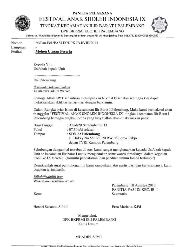 Contoh surat pemberitahuan lomba. Pemerintah kabupaten pati kecamatan ponorogo desa ronggo rt 009. Surat izin ini dibuat untuk mendapatkan persetujuan dari pihak kepala sekolah atau madrasah bahwa tim yang akan dikirim atau siswa yang ikut lomba merupakan resmi dari sekolah dan atas. Surat ini biasa digunakan oleh instansi pemerintahan pendidikan perusahaan atau suatu organisasi. Entah itu dilihat dari segi formatnya dan juga dari segi kepenulisannya. Untuk menyampaikan suatu informasi kepada banyak orang pihak lain. Contoh surat undangan lainnya terbaru 2019.