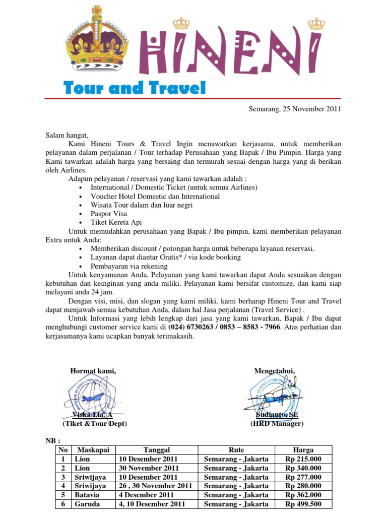 Dalam lingkup bisnis surat penawaran kerjasama amatlah penting dan sangat sering digunakan oleh berbagai perusahaan. Contoh surat perjanjian kerjasama sebagai suatu perusahaan yang ingin cepat berkembang maka tentu sebuah perusahaan tidak bisa berdiri sendiri tanpa ikatan dengan perusahaan lain. Admin dari blog bagi contoh surat 2019 juga mengumpulkan gambar gambar lainnya terkait contoh surat penawaran kerjasama travel agent dengan perusahaan dibawah ini. Surat penawaran sendiri merupakan salah satu jenis surat yang ditulis dengan maksud untuk menawarkan sejumlah barang maupun jasa tertentu kesebuah perusahaan mauapun ke calon konsumen untuk terjalin suatu kerjasama bisnis atar kedua belah pihak. Penawaran suatu barang jasa bahkan kerjasama dengan pihak lain akan lebih baik jika menggunakan surat penawaran. Itulah yang dapat kami bagikan terkait contoh surat penawaran kerjasama travel agent dengan perusahaan.