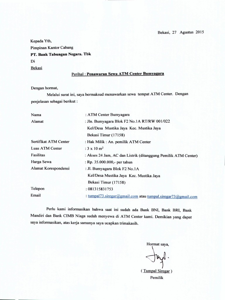 Contoh surat penawaran tempat atm. Contoh surat peminjaman tempat dan alat. Dalam bisnis rumah toko surat perjanjian sewa ruko atau kios memang dibutuhkan untuk berpegang pada landasan hukum sehingga tidak terjadi pelanggaran diatara kedua belah pihak. Tak hanya sekedar tempat saja namun peminjaman alat juga harus disertai dengan surat juga. Contoh surat penawaran menjadi seorang pengusaha atau bisnisman pasti akan mengenal salah satu jenis surat resmi ini. Contoh surat penawaran tempat atm adalah gambar contoh surat berdefinisi tinggi dan memiliki ukuran 768x1024.