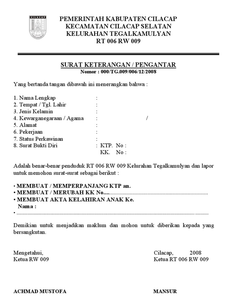 Demikian untuk contoh surat pengantar dari rt rw yang telah kami rangkun secara detail semoga informasi diatas dapat bermanfaat bagi anda semua. Namun dibeberapa perusahaan juga masih ada yang menggunakan surat pengantar jadi tidak heran jika surat ini masih dipakai sehari hari. Habis itu petugasnya langsung ketak ketik di depan gue gue tungguin sekitar 5 menitan terus langsung diprin gitu surat suratnya. Surat pengantar rt akan ditandatangani oleh ketua rt dan diberikan cap dan nomer suratnya kemudian surat pengantar ini dibawa ke kantor kelurahan kemudian dari kelurahan maka kita akan mendapat surat keterangan dari lurah kemudian kita bawa kekantor kecamatan untuk proses pembuatan ktp. Contoh surat pengantar saja yang saat ini memang sangat dibutuhkan karena surat pengantar termasuk contoh surat resmi.
