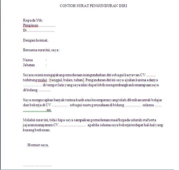 Contoh Surat Pengunduran Diri Kerja Yang Baik Dan Sopan