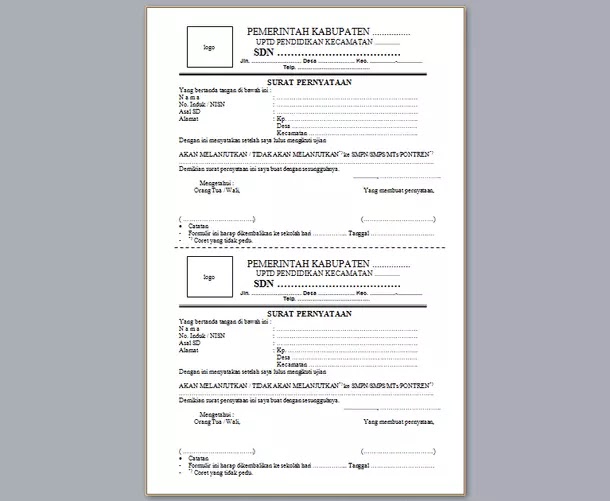 Surat Pernyataan Orang Tua Untuk Daftar Sekolah Info