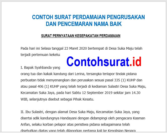 Contoh surat perjanjian damai pemukulan. Contoh surat kesepakatan perdamaian antara seorang pemilik kendaraan sepeda motor dengan orang yang diduga mencuri sepeda motor tersebut dan disertai dengan pencabutan laporan polisi serta janji tidak akan melakukan tuntutan hukum apapun lagi. Contoh surat pernyataan kasus pencurian. Download contoh surat pernyataan damai secara kekeluargaan yang dapat diunduh secara lengkap dan gratis tanpa perlu daftar. Perjanjian kesepakatan perdamaian penganiayaan. Dalam arti lain surat ini diartikan sebagai pernyataan secara tertulis tentang kesanggupankesediaan seseorang atau kelompok untuk menjalankan sesuatu yang telah disepakati dalam surat itu. Saat berkendara harus fokus dan tidak boleh lalai.