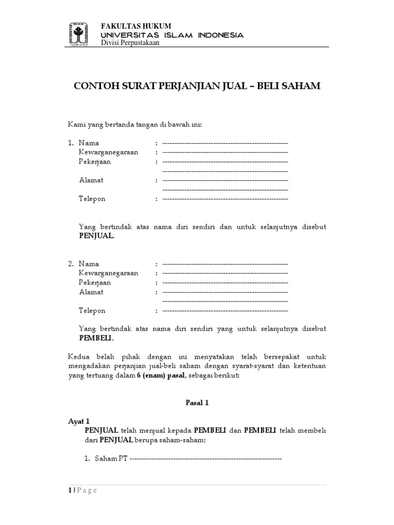 Contoh surat perjanjian saham. Dengan dilakukan investasi ini melibatkan beberapa pihak. Contoh surat perjanjian kerjasama investasi kali ini admin postingkan contoh surat perjanjian kerja sama investasi silahkan simak dibawah ini. Surat perjanjian kerjasama investasi pada hari ini tanggal tujuh bulan juni tahun dua ribu dua belas 07062017 yang bertanda tangan di bawah ini. Contoh surat perjanjian jual beli 2. Berikut sedikit cuplikan dari surat ini yang bisa anda download dalam format doc microsoft word document melalui link di bagian bawah artikel ini. Contoh surat kuasa jual beli saham in addition it will feature a picture of a kind that could be observed in the gallery of contoh surat kuasa jual beli saham.