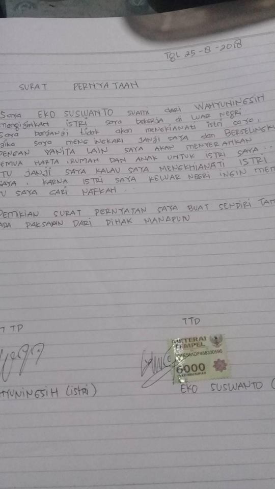 Contoh surat perjanjian suami selingkuh. Selingkuh tidak hanya menimbulkan pengaruh negatif selain dampak negatif selingkuh di sini juga terdapat dampak positif dari selingkuh. Contoh surat perjanjian untuk suami have an image from the othercontoh surat perjanjian untuk suami in addition it will include a picture of a kind that may be seen in the gallery of contoh surat perjanjian untuk suami. Bedanya keterangan suami istri dibuat oleh kelurahan sedangkan pernyataan ini dibuat sendiri oleh yang bersangkutan. Contoh surat perjanjian suami istri semoga dengan gawe cv post beberapa contoh contoh surat dapat menjadikan anda lebih baik lagi dalam berkreasi serta menulis surat yang baik dan menarik. Ada banyak alasan yang mengharuskan sepasang suami istri untuk bercerai dan berpisah tergantung dari permasalahan keluarga masing masing. Contoh surat pernyataan cerai pada umumnya tidak ada orang yang menginginkan perceraian namun pada kenyatannya masih sering terjadi kasus perceraian dimana mana.