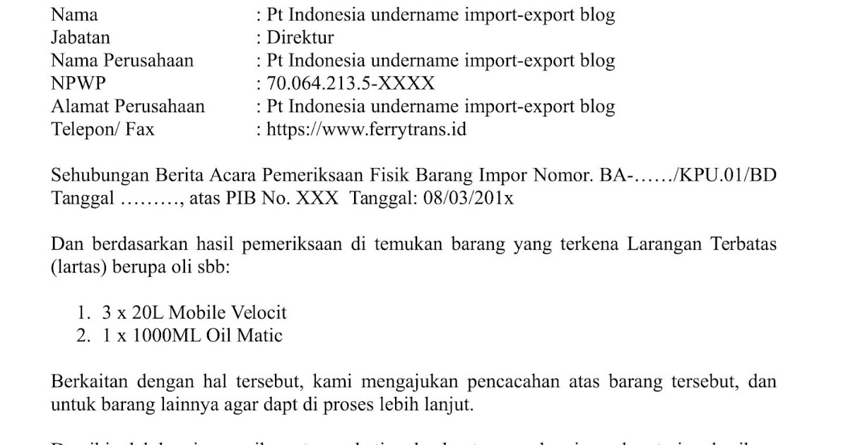 Terima kasih telah mengunjungi blog bagi contoh surat 2019. Format contoh surat permintaan ekspor terbaik 2019. Application letter 1 contoh buat surat tempat izin usaha situho 1 contoh dokumen surat penyataan 1 contoh surat ijin re ekspor kawasan berikat 1 contoh surat jual beli 1 contoh surat kirim barang dengan kurir di kawasan berikat 1 contoh surat lamaran kerja 1 contoh surat penarikan kontener ekspor 1 contoh surat pernyataan re. Cukup sekian beberapa penjelasan tentang contoh surat penawaran beserta cara membuatnya. Ajukan surat permohonan pembatalan peb kepada pihak bea dan cukai di wilayah pengiriman barang ekspor anda contoh surat pembatalan ekspor barang pdf format. Cara membuat contoh surat pengiriman ekspor tidaklah susah anda cukup kopi paste contohtemplate surat di bawah ke.