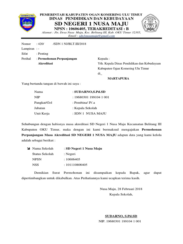 Sedangkan untuk surat ban sm no. 030ban smlli2017 tentang perpanjangan akreditasi dapat diunduh di sini demikianlah contoh surat permohonan perpanjangan akreditasi bagi sekolah dan madrasah yang masa berlaku akreditasinya telah habis. Berikut contoh format terbaru surat permohonan akreditasi ban pnf untuk p aud lkp pkbm dll. Sebagaimana diketahui permohonan pengajuan akreditasi paud dan pnf saat ini dilakukan secara online melalui aplikasi sispena ban puad pnf yakni sispena 20. Contoh surat permohonan pengajuan akreditasi sekolah. Yang dapat di akses melalu laman banpaudpnfkemdikbudgoidsispena.