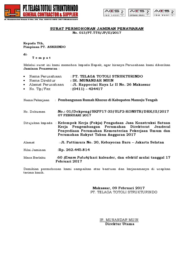 Contoh surat permohonan jaminan pelaksanaan. 10 contoh surat permohonan paling lengkap. Mohon maaf apabila terdapat kesamaan nama tempat atau informasi di dalam surat karena surat yang dibuat hanya untuk percontohan saja tanpa ada maksud apapun. Permohonan garansi bank jaminan pelaksanaan kepada yth pt. Besarnya sebenarnya bervariasi namun di indonesia telah terjadi kesepakatan bahwa besarnya adalah 5 dari nilai surat perjanjian kerja kontrak. 12 03 120 00021 nilai bond. Contoh surat perjanjian.