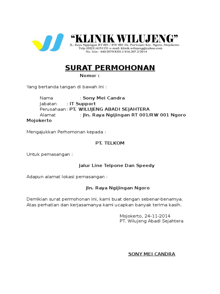 Atas perhatian dan bantuanya kami ucapakan terima kasih. 0118 desa sukasirna kec. Demikianlah surat permohonan ini kami buat. Untuk kali ini akan disampaikan contoh surat kuasa untuk berhenti berlangganan layanan telkom speedy yang bukan milik sendiri. Contoh surat penawaran pemasangan wifi contoh surat izin pemasangan telepon indihome untuk sekolah pengajuan pemasangan wifi contoh surat permohonan penambahan bandwidth contoh proposal pengajuan pemasangan wifi. Hal ini bertujuan agar permohonan pinjaman dana dapat dipercepat.