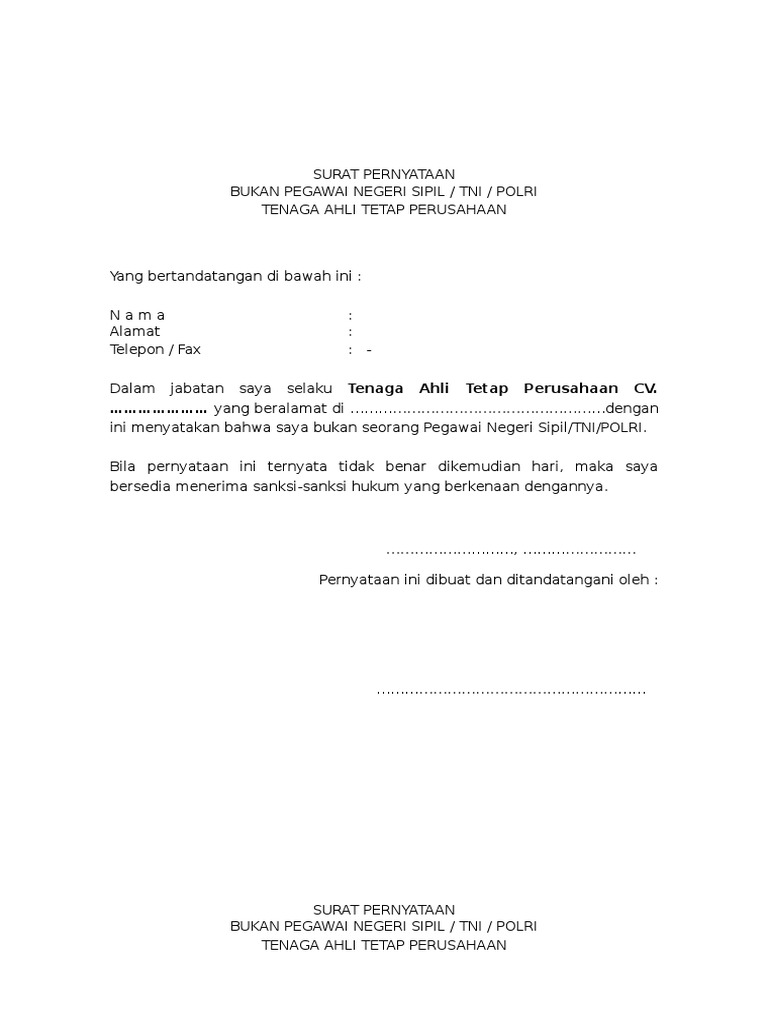 Menyatakan dengan sesungguhnya bahwa saya betul betul berstatus guru non pns dan tidak berstatus sebagai cpnspns. Contoh file kode administrasi dalam surat menyurat berikut ini adalah kumpulan dari berbagi sumber tentang contoh surat kuasa untuk pns yang bisa gunakan untuk administrasi. Membuat surat pernyataan dalam melamar cpns bagi yang belum pernah memang sedikit susah. Tujuannya tentu saja agar tidak mengulangi kesalahan tersebut di kemudian hari. Dimana surat pernyataan untuk calon pegawai negeri sipil memang berguna untuk menyatakan bahwa anda tidak pernah dipecat pendidikan sesuai kesehatan baik dan juga tidak pernah melakukan. Demikian surat pernyataan ini saya buat dan apabila dikemudian hari pernyataan saya ini tidak benar saya bersedia mengembalikan ke kas negara atau menerima sanksi lainnya sesuai dengan ketentuan yang berlaku.