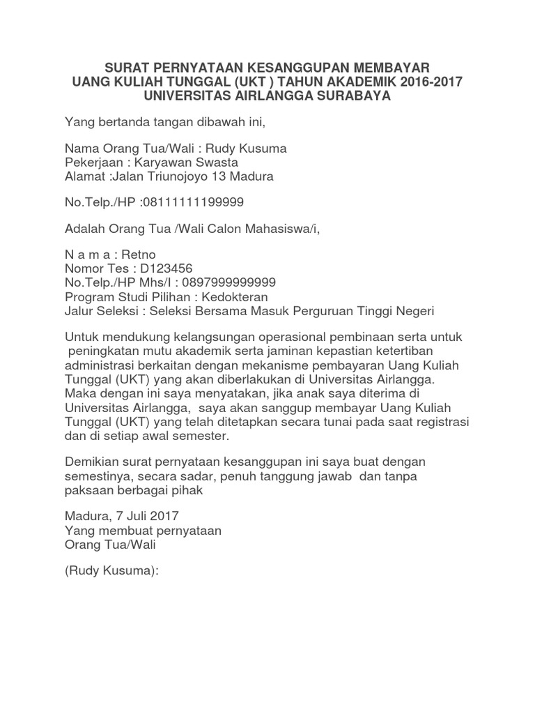 Jika diperlukan anda juga bisa mendowload surat perjanjian doc format word dalam ukuran a4 dan f4. Contoh surat perjanjian pembayaran uang muka dp rumah. Saya bersedia dan sanggup membayar uang kuliah tunggal ukt sesuai dengan nominal yang telah ditetapkan dan tidak akan mengajukan permohonan penurunan pembayaran ukt selama menjadi mahasiswa uin sunan ampel surabaya demikian surat pernyataan ini saya buat dengan sebenarnya tanpa ada paksaaan dari pihak manapun. Contoh surat pernyataan kesanggupan mengenai kesanggupan atau tidak. Akuntansi bermohon untuk dikeluarkan surat keterangan telah membayar uang kuliah atau uang ujian meja hijau atau uang wisuda dikarenkan kwitansi saya hilang. Surat penagihan pembayaran untuk anda yang berkecimpung dalam dunia bisnis atau niaga pastinya sudah tidak asing lagi dengan yang and rating.