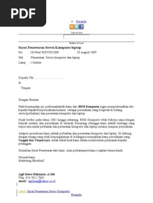Contoh surat pesanan laptop. Surat pesanan adalah surat yang dikeluarkan oleh suatu perusahaan atau instansi tertentu yang tujuannya untuk memesan suatu produk atau barang kepada mitra kerja samanya. Memahami mengenai contoh surat penawaran barang elektronik sangat perlu karena biasanya sebelum diadakanya sebuah kerjasama pihak pertama yang berperan sebagai penawar barang akan menawarkan barangnya terlebih dahulu dan berusaha meyakinkan bahwasanya pihak kedua atau seseorang yang menjadi target atau konsumennya percaya dan bersedia menerima tawaran barang elektronik tersebut. Salah satunya yaitu kebutuhan akan laptop. Salah satu contoh surat yang paling sering digunakan oleh perusahaan adalah contoh surat pesanan barang. The collection that consisting of chosen picture and the best amongst others.