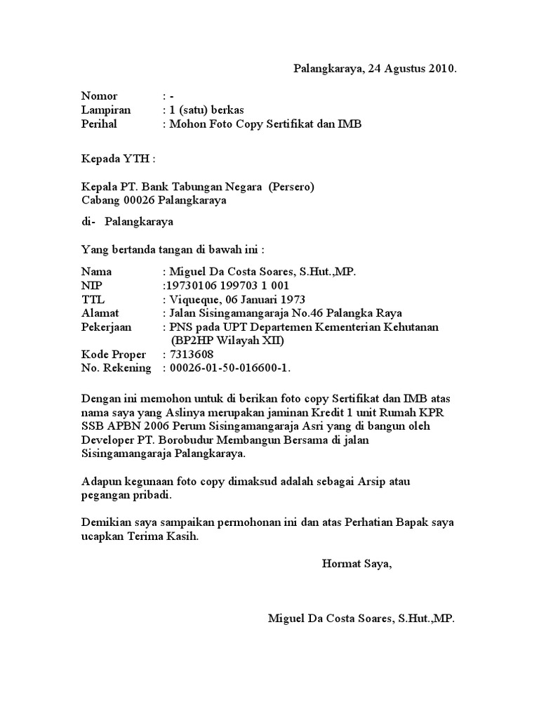 Contoh Surat Permohonan Kyg Kredit Yasa Griya Btn Parman Acc