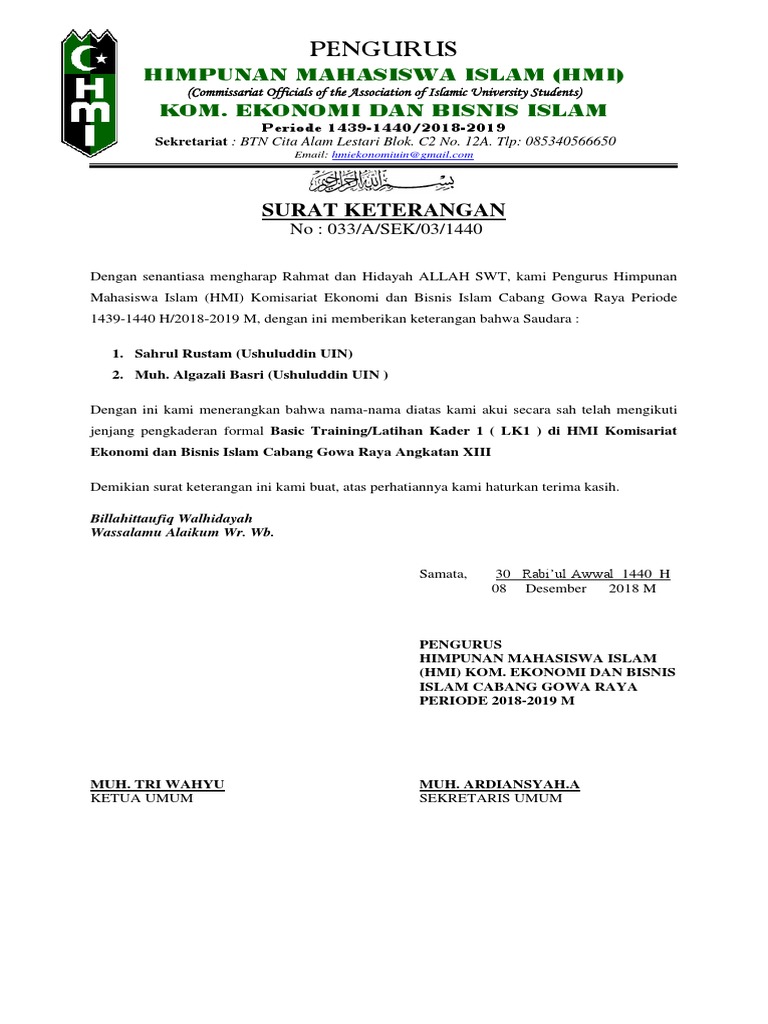 Contoh surat rekomendasi hmi. Beberapa tujuan rekomendasi ini yang paling umum misalnya dalam hal lamaran pekerjaan menjalin kerja sama bisnis masalah pendidikan dan masih banyak tujuan lainnya. Fakta ini biasanya diisi dengan data sesuai permintaan dari orang yang meminta surat rekomendasi tersebut. Surat ini bisa digunakan untuk melamar pekerjaan baru dan mempermudah mantan karyawan tersebut memperoleh pekerjaan karena berisi keterangan positif berkaitan kinerja dan prestasi yang pernah diraih. 15 contoh surat permohonan rekomendasi paling lengkap ada banyak contoh surat yang masih dipergunakan sekarang ini baik itu untuk kepentingan pribadi maupun untuk kepentingan kelompok. Himpunan mahasiswa islam hmi cabang pontianak executive board of the association of islamic university students sekretariat. Bersama ini kami sampaikan bahwa himpunan mahasiswa islam komisariat stai muttaqien purwakarta telah melaksanakan rapat anggota komisariat ke xiii yang pada acara tersebut telah terpilih ketua formateur hmi komisariat stai muttaqien purwakarta periode 2015 2016 yang selanjutnya bertugas menyusun kelengkapan pengurus hmi komisariat stai muttaqien dan menyiapkan pelantikan serta pengukuhan.