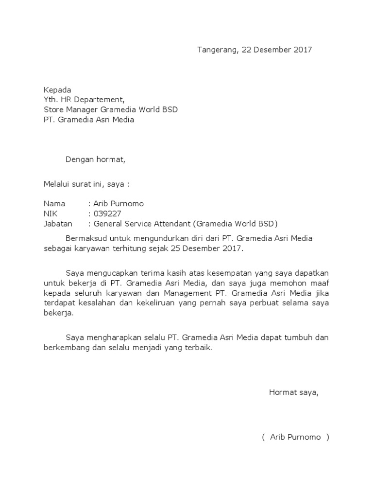 Contoh surat resign sudah tidak menjadi hal yang asing jika dalam dunia kerja ada suka dan duka yang silih berganti. Contoh surat pengunduran karyawan. Melalui surat ini saya agung wahyu yang telah bekerja sebagai sopir di pt mesindo prima autopart. Apalagi jika mendapatkan pekerjaan di perusahaan bergensi dengan skala nasional atau international. Contoh surat lamaran di indomarco indomaret dan alfamart misalnya dapat kita jumpai di jakarta medan bekasi bandung makassar pekanbaru. Contoh surat contoh surat lamaran di indomarco.