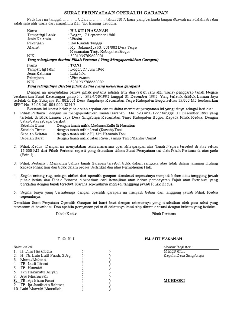 Contoh surat tanah garapan. Dengan ini menyatakan bahwa saya. Contoh surat oper alih tanah garapan contoh surat oper alih tanah garapan yang baik dan benar surat oper alih tanah garapan surat oper alih tanah garapan yang baik dan benar. Demikian contoh surat oper alih tanah garapan ini dibuat semoga bisa menjadi referensi yang baik bagi anda yang membutuhkan. 07 october 2015. Tanah garapan ini bisa juga dioperalihkan kepada pihak lain dimana si penggarap pertama akan menerima ganti rugi terhadap tanah garapan yang dialihkan tersebut. Mohon maaf apabila terdapat kesamaan namatempatinformasi lain karena surat yang dibuat hanya bertujuan sebagai percontohan tanpa ada maksud apapun.
