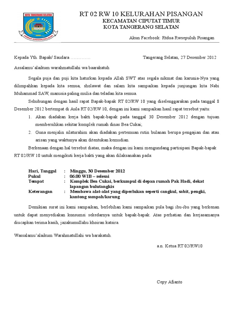 Contoh surat undangan arisan rt di bawah ini juga memiliki struktur badan surat isinya tentang kalimat undangan disesuaikan dengan tujuan dibuatnya undangan. Berikut beberapa langkah pembuatannya. Contoh surat undangan kita tahu surat undangan adalah sebuah tulisan di dalam kertas yang memuat ajakan kepada orang lain baik perorangan maupun kelompok untuk menghadiri kegiatan tertentu. Pada artikel contoh surat berikut ini kami akan memberikan contoh surat undangan arisan rtyapss dilingkungan tertentu seperti dilingkungan tempat tinggal mimin. Fb twitter wa line pinterest g linkedin. Contoh surat undangan arisan keluarga yang baik dan benar sebagai bahan referensi membuat surat undangan arisan yang resmi dan profesional.