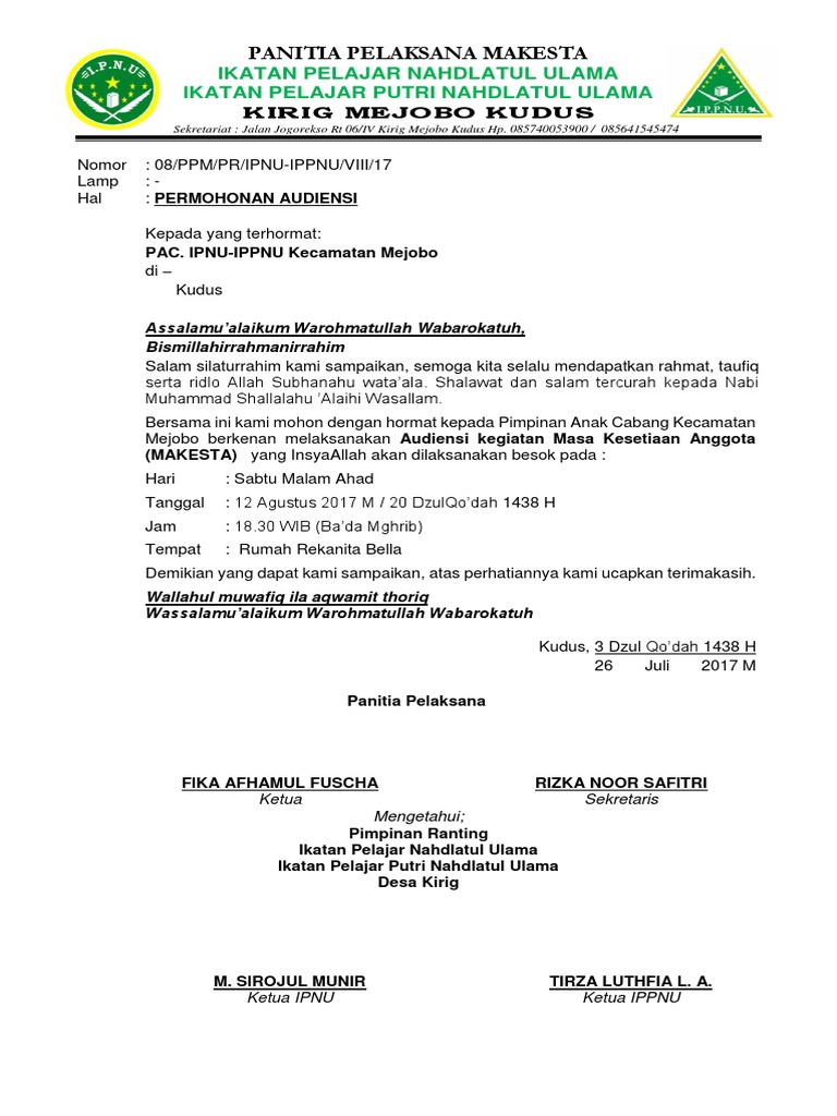 Silahkan lihat contoh di bawah ini undangan untuk ranting dalam rangka acara triwulan semseter ipnu ippnu yang selalu hidup terus organisasi ini. Ipnu ippnu kecamatan kawali kabupaten ciamis jalan kawali demikian surat pemberitahuan ini kami sampaikan atas perhatiannya undangan ipnu ippnu kaos ini gratis untuk pemesan undangan di lebah indah collectionc22225047315wapsos unlimited free android mobile phone downloadssurat ipnu 9114 views 8607 selanjutnya sehubungan komitsariatranting dan pac ipnu ippnu raman utara akan ikut serta. Contoh surat undangan panitia forum silaturahmi jamaah rifaiyah doc surat undangan silaturahmi irvan ab academia edu 21 contoh surat undangan resmi tidak resmi rapat. Di artikel ini saya bagikan untuk para kader kader nu khususnya ikatan pelajar nahdhotul ulama yang ingin membuat undangan untuk di acara makesta ranting dan juga untuk undangan rutinan ipnu ippnu di desa atau ranting yang sudah di dirikan organisasi ipnu. The collection that comprising chosen picture and the best amongst others. Beberapa contoh surat undangan nu ranting terbaru 2019.