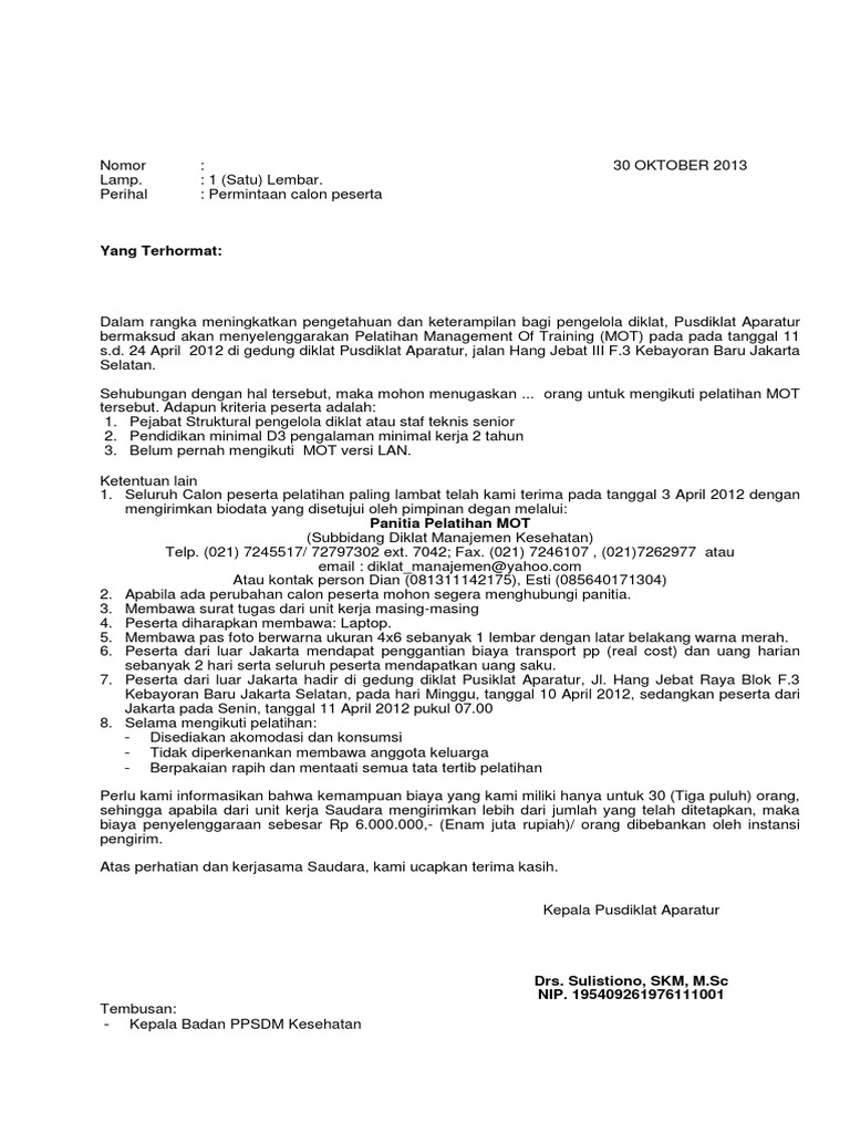 Contoh surat undangan peserta seminar atau pelatihan. Kali ini kita akan membahas contoh lain dari surat penawaran yaitu contoh surat penawaran pelatihan atau training. Dalam rangka pelaksanaan pelatihan operator komputer. Yogyakarta 10 desember 2016 lampiran. Dengan ini menyatakan bersedia secara sungguh sungguh mengikuti pelatihan yang dilaksanakan oleh dmpg provinsi sebagai peserta peningkatan kapasitas tenaga kontrak. Contoh surat permohonan mengikuti kegiatan diklat pada berbagai keperluan sebagai referensi membuat.