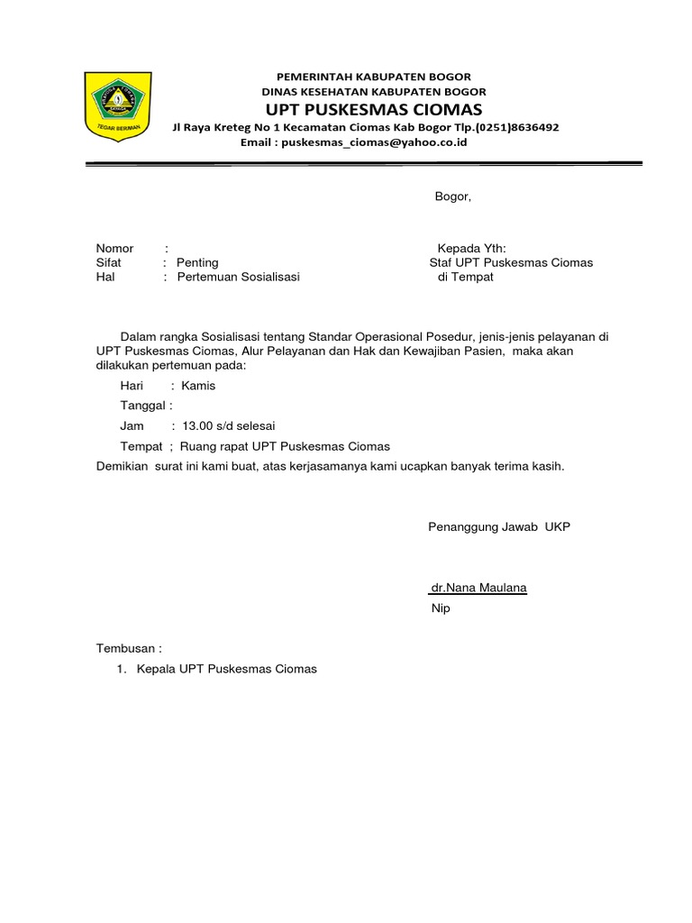Home surat resmi surat undangan surat undangan menghadiri sosialisasi. Beberapa contoh surat resmi undangan yang biasa kita temui adalah surat undangan untuk menghadiri rapat musyawarah ataupun sosialisasi. 15 contoh surat undangan resmi pemerintahan perusahaan organisasi dll jenis surat ada dua macam yakni surat resmi dan surat tidak resmi. Berikut adalah sebuah contoh surat undangan instansi yang ditujukan kepada kepala sekolah untuk keperluan sosialisasi tentang adanya perubahan format penulisan laporan bos. Contoh surat undangan sosialisasi bimbingan teknis bimtek merupakan salah satu surat yang sering dibuat oleh suatu organisasi atau panitia pelaksanaan kegiatan dalam pelaksanaan suatu kegiatan. Jika dibedakan berdasarkan penggunaan ataupun jenis jenisnya lagi maka surat resmi dan surat tidak resmi juga masih memiliki jenis yang sangat banyak salah satunya adalah surat undangan.